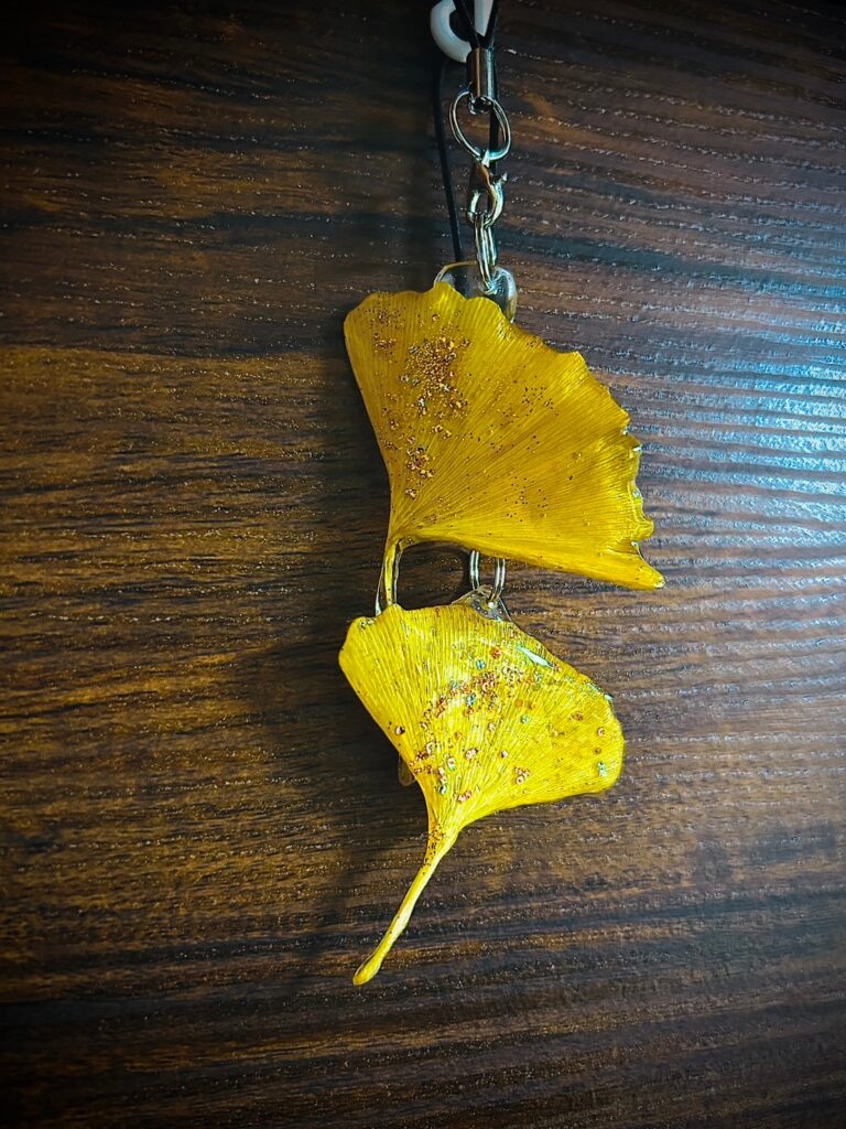 そこでいただいたイチョウをキーホルダーにしてお返しした時のですね